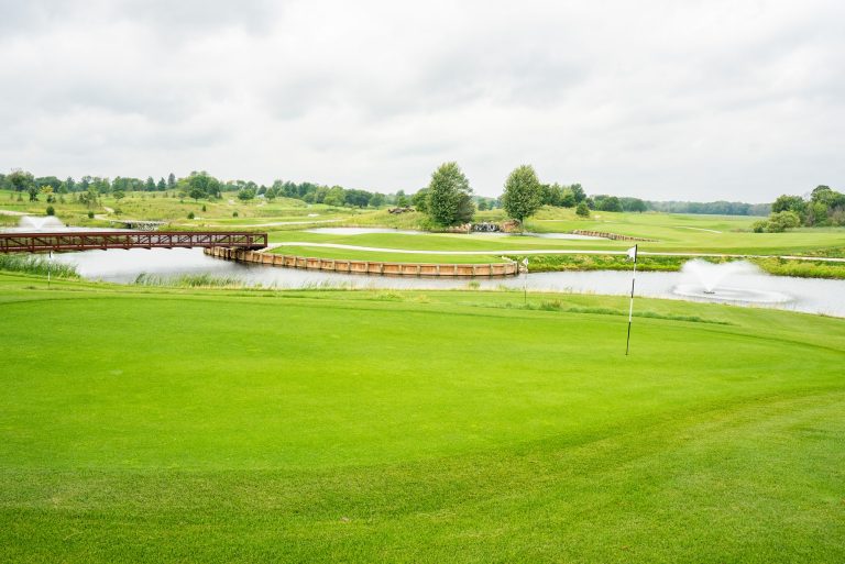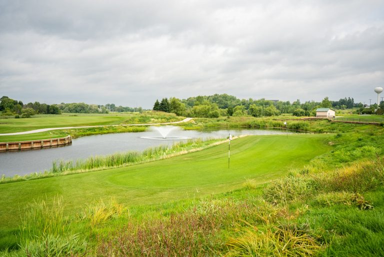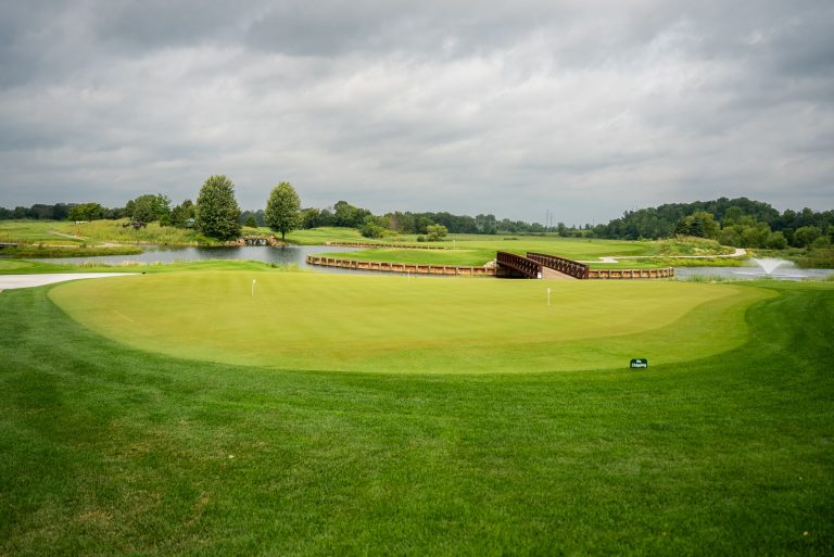 One putting green is 14,000 square feet and lies at the north end of the course, adjacent to the Starter Building and the main practice tee. This is the main putting green for golfers to practice putting or staging to play off the first tee. The other green is 8,000 square feet and adjacent to the clubhouse patio area.