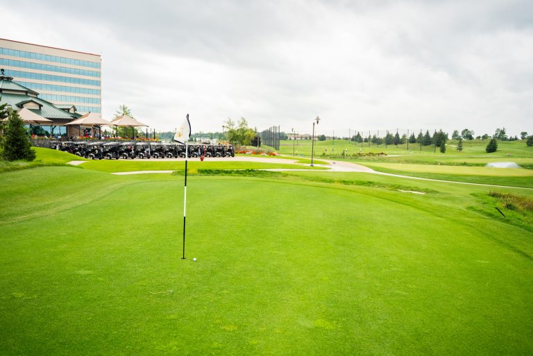 Two large practice putting greens simulate putting conditions found on The Meadows at Mystic Lake in terms of slope and putting speed. Both greens were built to United States Golf Association (USGA) specifications (as were all greens on the course) and are seeded with the same bentgrass that is found on the course.
